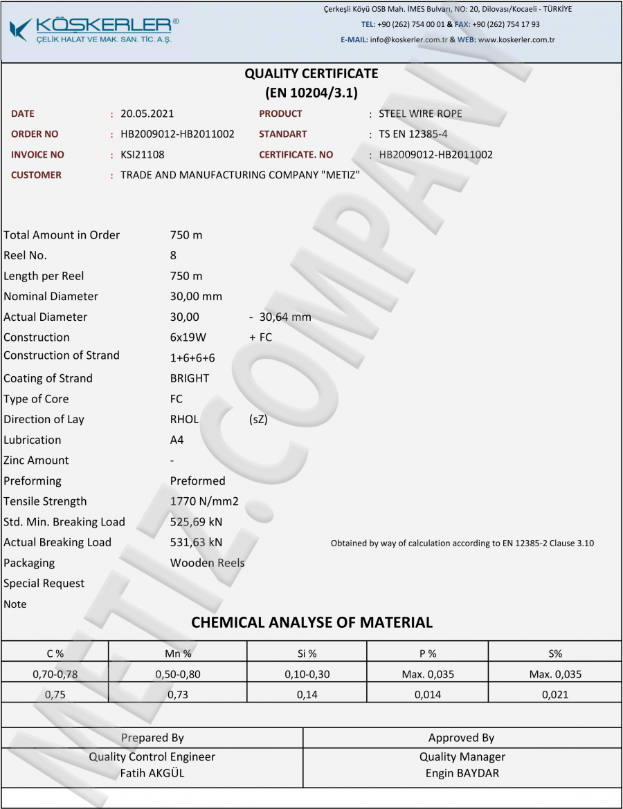 - Конструкція: 6х36WS 6x (1 + 7 + 7/7 + 14) +1 FC